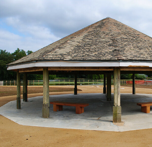 Restored by our very own team of carpenters, this is our original 1920s roundhouse, which has been neglected for years. It’s now a key part of the lakeside, providing shade when it’s sunny, and shelter from those little summer showers England gets now and then.